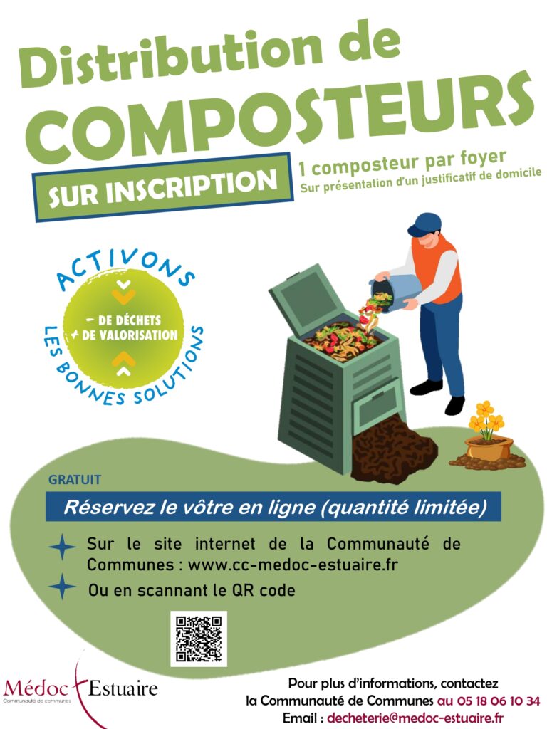 Dans le cadre du tri à la source des biodéchets, la Communauté de Communes Médoc Estuaire lance sa première campagne de distribution de composteurs. Information